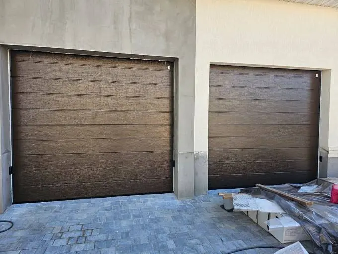 S-гофр цвета темный дуб, с автоматическим управлением, торсионные пружины, с калиткой