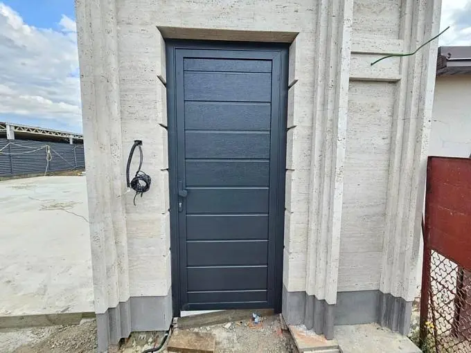 Рама 96 мм. Заполнение: сэндвич-панель Филенка цвета «Серый антрацит» (RAL 7016).